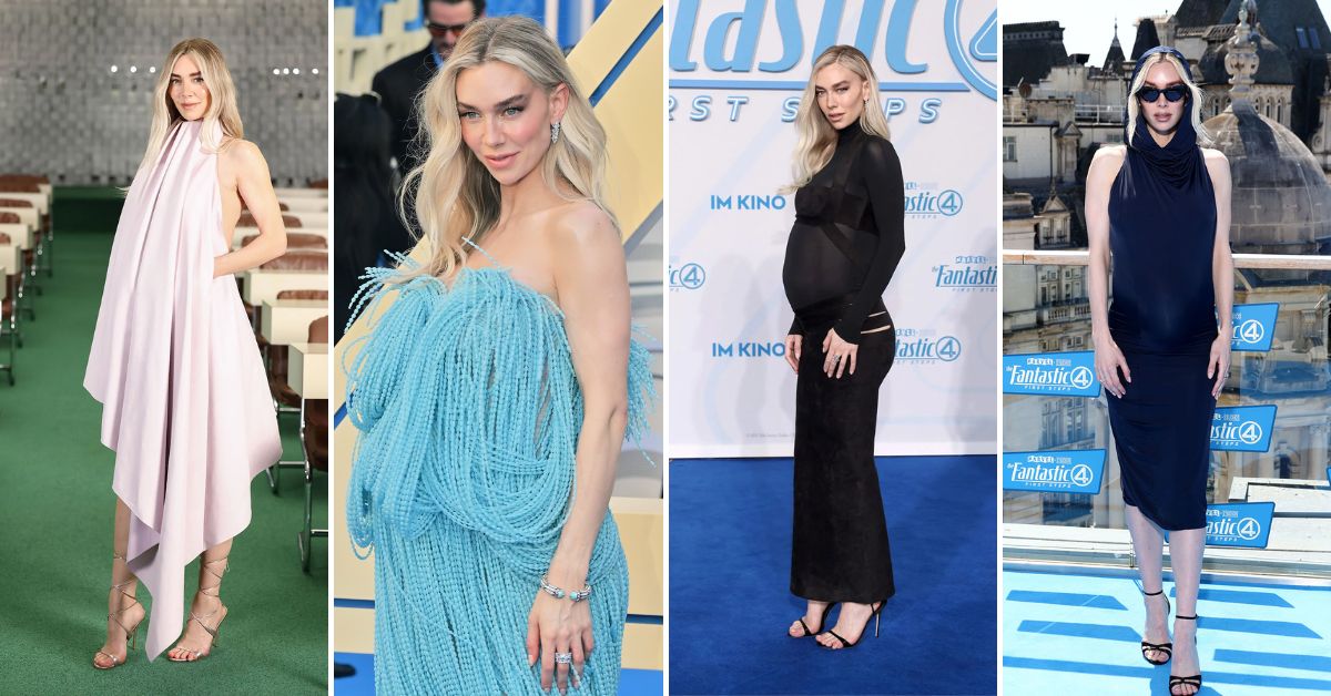 Keskin hatlı, neredeyse tehlikeli derecede sade ve minimalist elbiseleriyle “femme fatale” kavramının 2025 karşılığı oldu.Hem de oldukça zor olan “hamile stiliyle” birleştirerek!